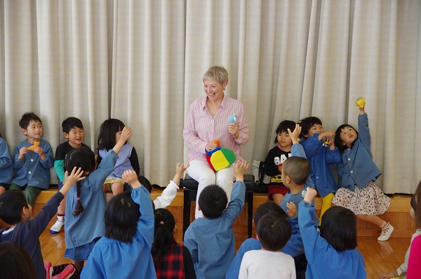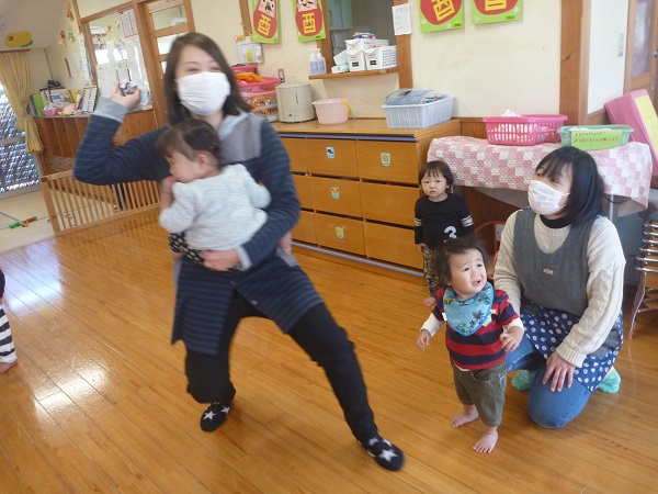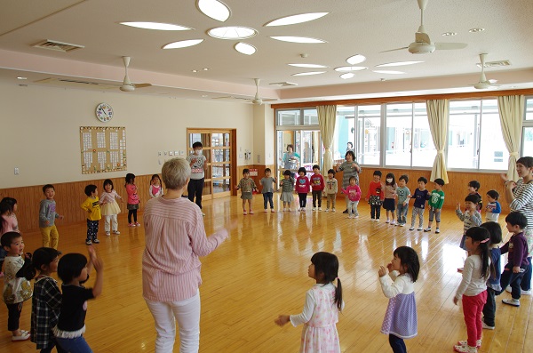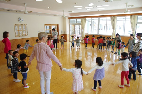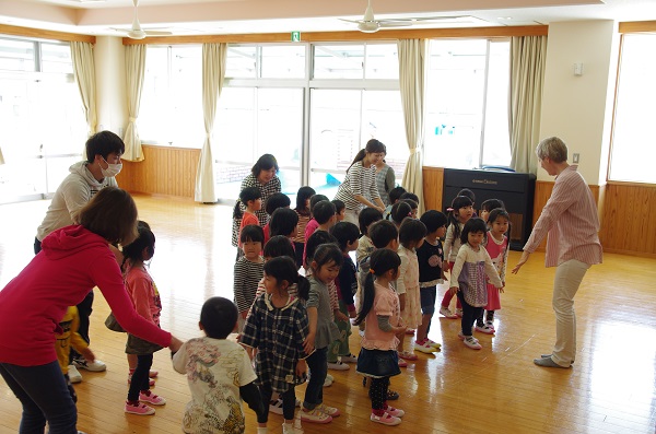 歌やダンスに英語を織り込んで自然と子どもたちが英語に親しめるようにしてくださっていました。