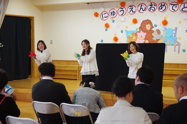 チューリップの花の手遊びとアンパンマンの人形劇がありました( *´艸`)