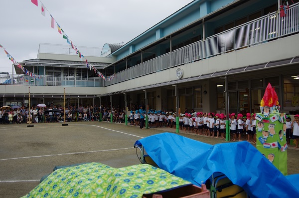 子どもたちは今日に合わせて練習をしてきたので雨だけはさけたかったのですが…