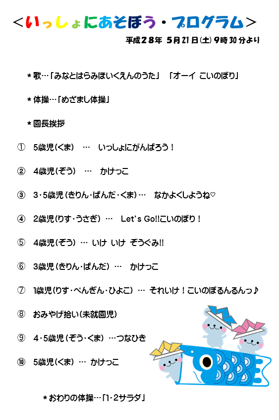 5月21日に春の運動会「いっしょにあそぼう」が行われました(*´▽`*)