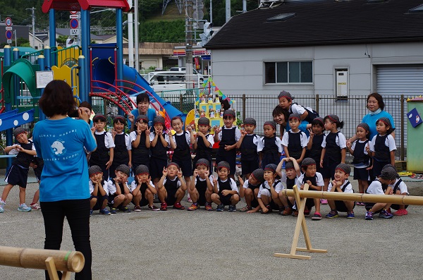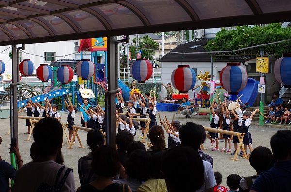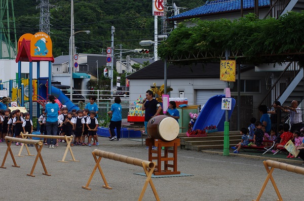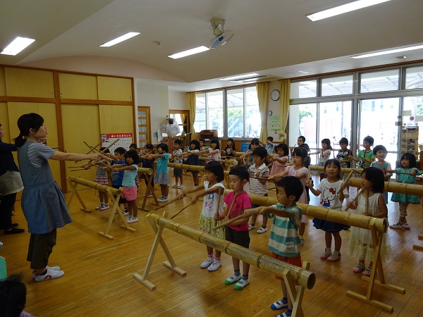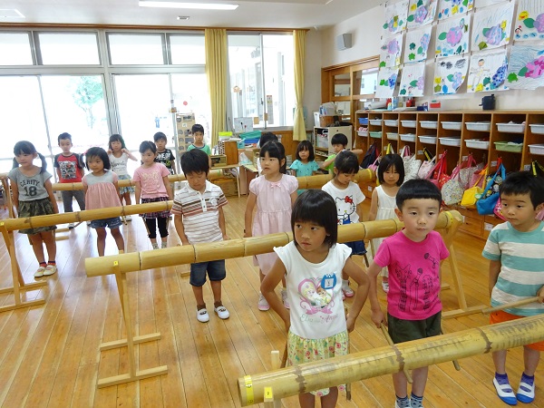年長さんは夕涼み会に向けて竹太鼓の練習☆