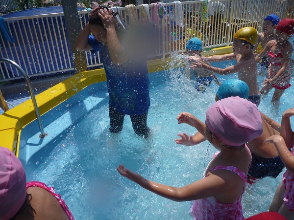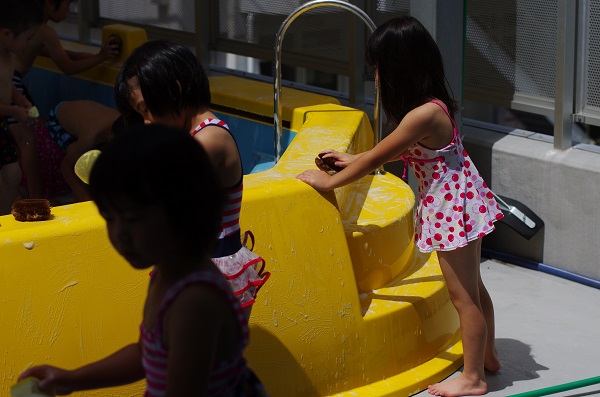 もうすぐ始まるプール遊びのために年長さんがプールのお掃除をしてくれました(*´▽`*)