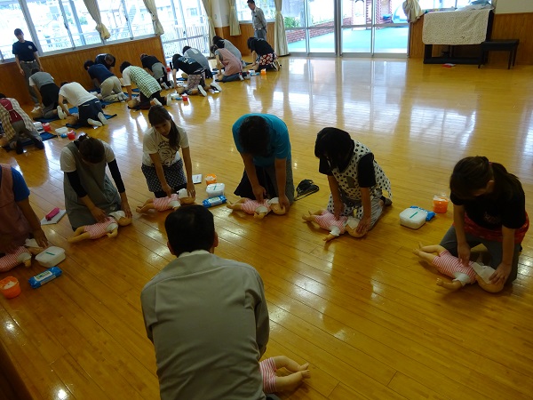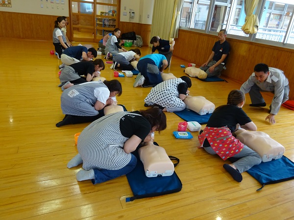 昨日の夕方に職員園内研修で、救命救急の講習を行いました。