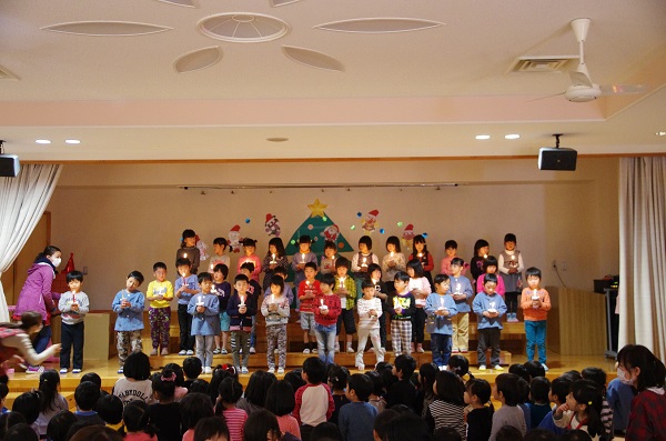 年長組さんによるキャンドルサービスとっても綺麗でした(*´ω`)
