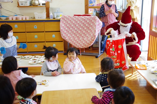 サンタさん登場に喜ぶ子ども達(*’▽’)プレゼントを頂いて一緒に歌を歌ったりと子ども達の嬉しいお顔がたくさん見られました。
