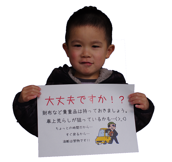 3事件概要 お迎えの保護者が駐車場に車を止め、園にお迎えに行っていた5分程度の間に、車のガラスが割られ、中の財布等が盗られたもの。警察が現在捜査中である。