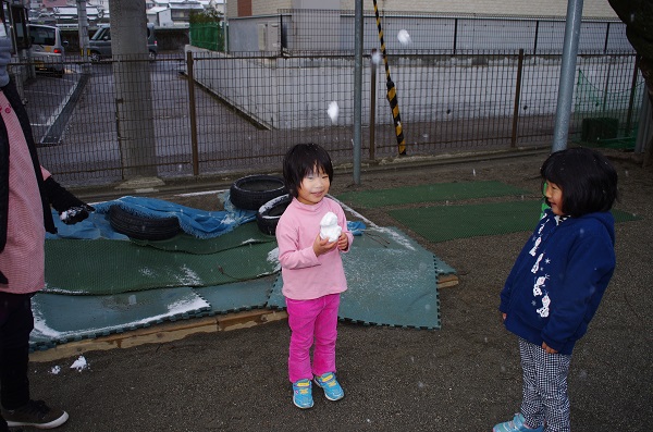 保育園でも午前中、子どもが遊ぶ時間に結構降っていまして、子どもたち大喜びでした(*^_^*)