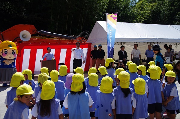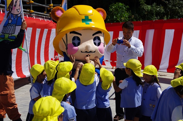 建設業協会のゆるきゃら、まもるくんとも遊んでもらって…