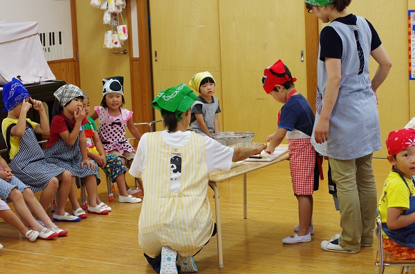 材料を切ったら後は給食の先生にお願いして、くま組さんはゲーム大会♪