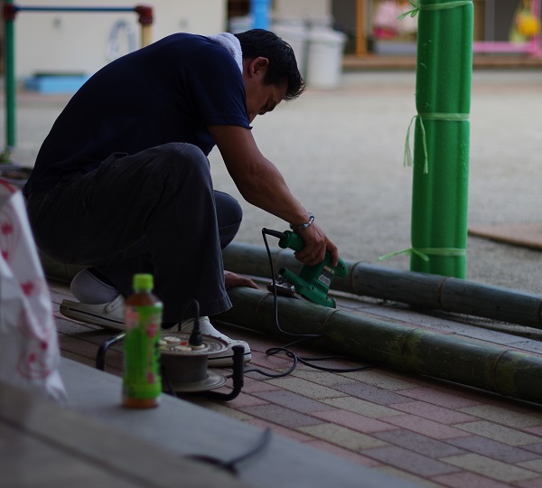 くま組さんのけいちゃんのお父さんが、そのマストの仕上げをしてくださいました(*^_^*)